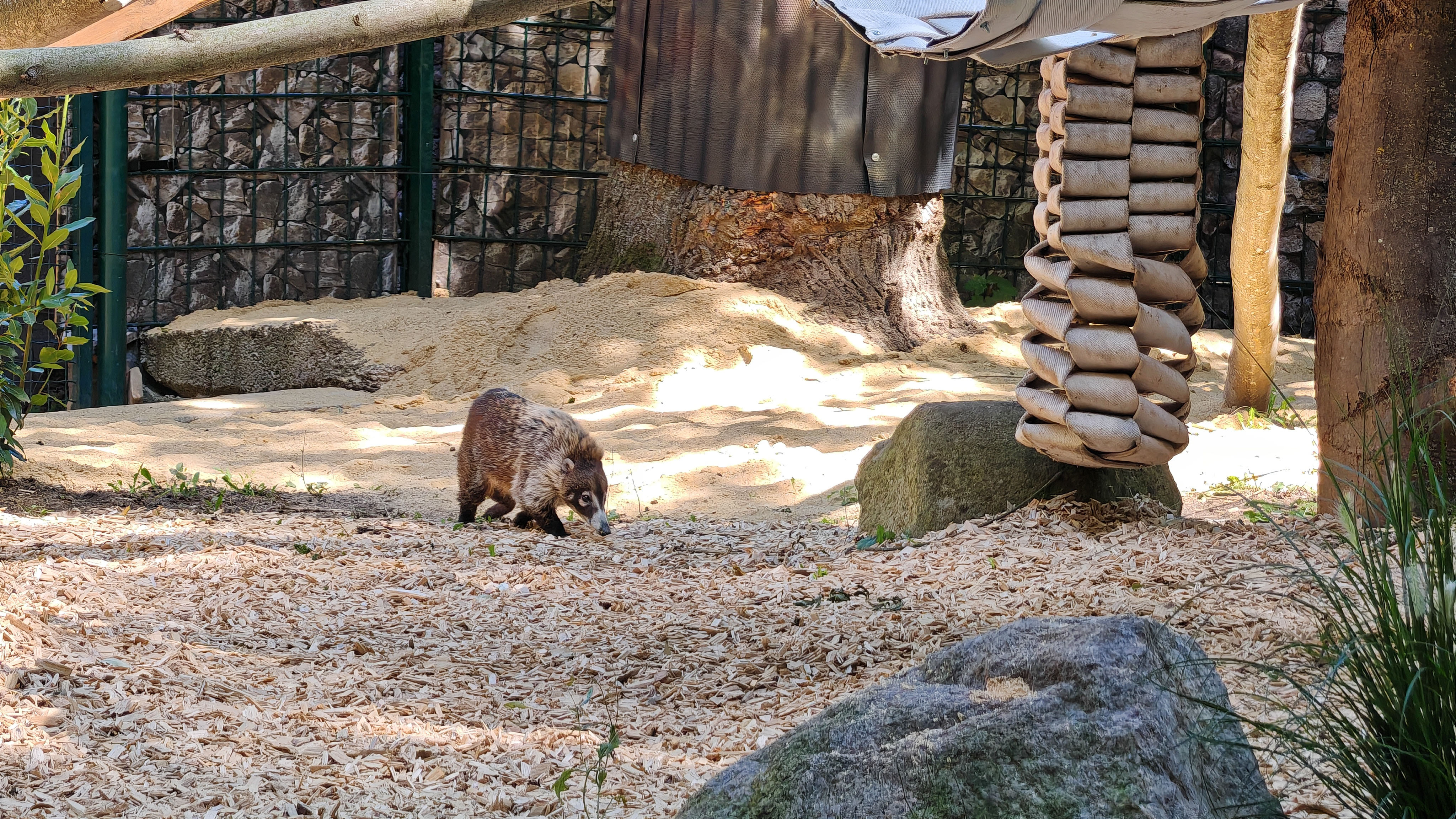 Weiß-Rüssel-Nasenbären sind geschickte Kletterer, die sowohl am Boden als auch in den Bäumen zuhause sind. Typisch ist ihr hoch aufgestellter Schwanz, der ihnen beim Balancieren hilft. Im Gegensatz zu vielen anderen Kleinbären sind sie überwiegend tagaktiv – ein Vorteil für Besucher, die die Tiere besonders gut beobachten können. In ihrer Heimat, den tropischen Wäldern Amerikas, ernähren sie sich vielseitig: Von Insekten über kleine Tiere bis hin zu Früchten und Pflanzen steht fast alles auf ihrem Speiseplan.
